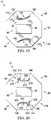 FIG. 3A is a diagram illustrating an enlarged view of a portion ofFIG. 2B ofindicator10, andFIG. 3B is a diagram illustrating an enlarged view of a portion ofFIG. 3A ofindicator10. Referring toFIGS. 2B, 3A and 3B, as described above, in response to an acceleration event indirection16 of a level and/or magnitude to overcome the bias force ofspring members40 and42,leaf spring56 inverts and a convex portion thereof applies a biasing force againstwall88 ofmass member30 to biasmass member30 to the activatedposition96. Additionally, ends70 and82 ofleaf spring58 are drawn out ofrespective seats64 and76. As best illustrated inFIGS. 3A and 3B, sidewalls46 and48 have formed therein indentregions102 and104, respectively, that are set back and/or offset from adjacent wall surfaces106,108,110 and112 ofsidewalls46 and48, respectively.Indent region102 is located alongsidewall46 betweenseats62 and64, andindent regions104 is located alongsidewall48 betweenseats74 and76. In response to movement ofmass member30 to the activatedposition96, ends70 and82 ofleaf spring58 are drawn out ofrespective seats64 and76 and become positioned withinrespective indent regions102 and104.Indent regions102 and104 prevent or substantially prevent ends70 and82 ofleaf spring58 from returning torespective seats64 and76. Thus, ifindicator10 is subjected to another acceleration event in a direction opposite direction16 (e.g., direction18) in an attempt to reset and/or re-positionmass member30 in thenon-activated position50 after being in an activated state,indent regions102 and104 resist the return ofends70 and82 ofleaf spring58 toseats64 and76, thereby resulting in an additional bias force in thedirection16 that would need to be overcome in an opposite direction to effectuate movement ofmass member30 toward thenon-activated position50.