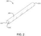 FIG. 2 shows an exemplaryimplantable containment tube200 that includes afirst access port215, asecond access port225, apermeable membrane205 forming the exterior of thecontainment tube200, and alumen210 extending through thecontainment tube200. In some embodiments, thecontainment tube200 is a flexible tube that is configured to receive one or more therapeutic device that provides therapeutic substances to an individual in need of treatment. In accordance with some aspects of the present disclosure, thecontainment tube200 has a cross-section in a shape that conforms or substantially conforms, at least in part, to the form of the therapeutic device (e.g., cell containment member) thecontainment tube200 is intended to house. As non-limiting examples, the cross-section of thecontainment tube200 may be circular, ovoid, or elliptical. In the embodiments disclosed herein, the containment tubes may have inner diameters that range from about 100 microns to about 5 mm, from about 150 microns to about 4.5 mm, from about 200 microns to about 4 mm, or from about 250 microns to about 3.5 mm. In some embodiments in which multiple containment tubes are utilized, the containment tubes may be separated from each other a distance from about 0.1 microns to about 3 mm, from about 5 microns to about 2.5 mm, from about 10 microns to about 2 mm, from about 25 microns to about 1.5 mm, or from about 50 microns to about 1 mm. It is to be noted that all ranges described herein are exemplary in nature and include any and all values in between.