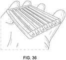 Using a template manufactured from aluminum sheet and shown inFIG. 35, localized heat was applied through the use of a Weller soldering iron Model PU-120T available from McMaster Carr. The localized heat re-melted the FEP, causing local adherence of the construct. The adhered pattern resulted in a planar construct with 7 channels of un-adhered material and a channel at one end that allowed all channels to communicate. The flat pattern of the template was designed to form flat channels having a length that approximated the circumference of a 4 mm diameter. The excess material was trimmed away and one of the channels was partially separated and designated as the flush port.