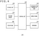 Acommunication controlling unit126 transmits and receives signals and data to and from therobot10 by wired communication or wireless communication through a network adapter or an antenna. Thecommunication controlling unit126 receives posture information detected by theposture sensor124 and sound data obtained by encoding a sound signal from themicrophone106 from thecontrol unit120 and transmits the received data to therobot10. Further, thecommunication controlling unit126 receives and supplies image data and sound data from therobot10 to thecontrol unit120. If image data and sound data are received from therobot10, then thecontrol unit120 supplies the image data to thedisplay panel102 so as to be displayed and supplies the sound data to theearphone104 so as to be output as sound.