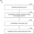 Atstep340, structured dialogue data may be generated from the dialogue data. In one embodiment, the structured dialogue data comprises an association between the target concept and the dialogue goal. For instance, the association may be a structured link. In one embodiment, an extracted concept may be determined from the target concept using a semantic scheme. As such, the target concept and the extracted concept can be linked to the dialogue goal using a structured data model.