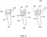 Turning toembodiment400 ofFIG. 4, exemplarymobile device holders402 and422 are illustrated. With respect to the embodiments ofdevice holders402,422, the holder is in certain respects a “hybrid” of the foregoing implementations.