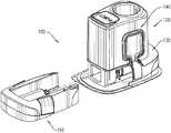 It is appreciated that both on/offmicroswitch374 andvial microswitch378 are deactivated whenreusable portion110 is snot attached todisposable base portion130.