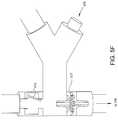 Referring now toFIG. 5E, a plan view of an example of a pressure-operated valve under a second pressure condition according to some embodiments is provided. In various embodiments, during a reservoir-use operation (e.g. a flushing operation), pressurized second IV fluid is received fromreservoir pump260 and into pressure-operatedvalve570 viatubing256. As illustrated inFIG. 5B, the pressurized second IV fluid applies a fluid pressure to shutcheck valve576. In the illustrated example, when the fluid pressure received fromreservoir pump260 viatubing256 is at or exceeds a threshold pressure ofcheck valve576,check valve576 shuts to block fluid flow fromtubing252 and provide fluid communication between the inlet fromtubing256 and the outlet totubing258 viacheck valve577. When the fluid pressure received fromreservoir pump260 viatubing256 is again less than the threshold pressure ofcheck valve576,check valve576 re-opens to re-open the inlet fromtubing252, and provide fluid communication between the inlet fromtubing252 and the outlet totubing258 viacheck valve577.