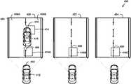 The sensor data may also include a plurality of frames of sensor data that is indicative of the environment (e.g., shown as420,422,424 inFIG. 4B). Taken together, the plurality of frames of data may be indicative of a time period during which the sensor data was acquired or a range within which sensor data was acquired within the environment. For instance, the plurality of frames of sensor data may include sensor data that may be obtained at different times during a particular day inenvironment400, and may include a combination of data collected by sensors of the vehicle402 (such as any types of data described as being collected by sensors of thevehicle100 inFIG. 1, for example).