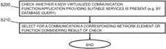 In S200, it is checked, when a communication is to be conducted with a network element or network function, a communication function or application in a communication network, whether at least one new virtualized communication function or application providing suitable services related to the communication network is indicated to be instantiated.
