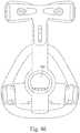 FIG. 49 shows a schematic side view of aforehead pad850 including three possible forehead engagement surfaces852,854,856. Each surface includes a cupped, concave shape to resiliently contact the patient.Pad850 includes aside lug858 that is supported by a forehead support (not shown).Lug858 is eccentrically mounted, or offset, so that thepad850 spaces the forehead support away from the patient at three different distances depending on thesurface852,854,856 that contacts the patient's forehead.