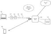 FIG. 1 is an illustration of frame handling in a lossy wireless environment according to some embodiments. In some embodiments, anetwork device110, which may include or be linked with an access point, is to support wireless communication including transfer of TCP frames with one or more connected devices, such as the illustratedlaptop130 andcellular telephone140. Thenetwork device110 includes an interface to anetwork120, which may include connection to the Internet. Thenetwork device110 may include support for anRx reorder window115 under one or more IEEE 802.11 protocol standards, thenetwork device110 to buffer and reorder received frames as needed utilizing theRx reorder window115. The network environment may be a noisy and lossy environment, including, for example,network interference150 from one or more competing radio sources.