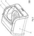 Also visible throughtransparent door210 inFIG. 1 andFIG. 2 areside walls310,340 and320ofthe cooking compartment300 as well ascylindrical basket400 and horizontal platform for supportingfood stuff500.