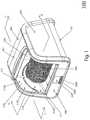 FIG. 3 is an isometric view of thecountertop cooking appliance100 with itsdoor210 hinged in an open position and aperforated cooking container400 removably supported by itsaxels410 and411 (not visible) onbrackets213 and214. Also shown isdrip tray600 suspended fromaxels410 and411.Left side wall310 shown incorporates andarcuate track311 and abracket313 for supportingaxel410 whendoor210 is in its closed position. Also shown isback wall320 andbottom330 ofcooking compartment300, as well ashorizontal bar209 serving to support thedoor210 when it is hinged to a closed position.