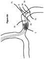 ThepH sensor56 is positioned at a distal end of theguidewire50 and is electrically coupled tocoupler80 and/orcable83 via a pair of wires (not shown) extending from thesensor56. The wires can be embedded in a wall of theguidewire50, or alternatively, the guidewire can have a lumen or channel through which the wires extend. In the embodiment ofFIG. 8A, thesensor56 is positioned on an outer wall of theguidewire50, extending circumferentially around 360 degrees. The sensor can also be incorporated into a marker band at the tip of theguidewire50 as described below. In an alternate embodiment, thesensor56′ and wires57 (only one is shown) ofguidewire50′ can be positioned inside theguidewire50′, either internal of the inner wall of the guidewire as shown inFIG. 8B, or alternatively embedded in the wall of the guidewire. Thecatheter70 through which the guidewire extends can have amarker band79 for imaging. Note inFIG. 8A, thecatheter70 and guidewire50 are positioned in a cerebral artery A distal of clot C.