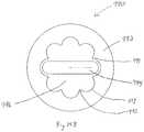 Outer ring982 may have a channel988 (see, e.g.,FIG. 139) running through its center.Channel988 may be circumscribed by radially-inwardly extendingtoroidal splines989 ofouter ring982.Splines989 may form alternatingpeaks991 andtroughs993 extending in a poloidal direction aboutchannel988. In one example, peaks991 andtroughs993 may give channel988 a cross shape. Each oftroughs993 may be approximately ninety-degrees offset from an adjacent trough to provide similarly offset locking positions betweeninner ring980 andouter ring982. Opposingtroughs993 may be at least partially complementary tosplines984A and984B ofinner ring980.Outer ring982 may be in a stable state when splines984 ofinner ring980 are received introughs993, and may be in an unstable state when splines984 are in engagement withpeaks991. Whenouter ring982 is in an unstable state with respect toinner ring980,outer ring982 may be inherently biased to rotate toward a stable state. It should be understood thatouter ring982 may be coupled to the bag at, for example, a proximal portion of the bag, in any manner described herein.
