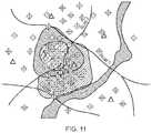 FIG. 12 is a schematic illustration of a map indicating densities of user queries about the performance of a network.