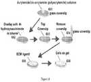 In another embodiment, to crosslink adhesion proteins onto the gel or matrix, a heterobifunctional crosslinker is utilized. In another embodiment, the heterobifunctional crosslinker is sulfo-SANPAH (sulfosuccinimidyl6(4′-azido-2′-nitrophenyl-amino)hexanoate, Pierce no. 22589). In another embodiment, the heterobifunctional crosslinker is any other heterobifunctional crosslinker known in the art. In another embodiment, sulfo-SANPAH is used as follows. 1 mg/ml sulfo-SANPAH is dissolved in H2O, and 200 μl of this solution is pipetted onto the gel surface. The polyacrylamide gel is then placed 6 inches under an ultraviolet lamp and irradiated for 10 min. It is then washed three times each with 3 mL of 200 mM HEPES, pH 8.6. After the last HEPES solution is aspirated, 200 μl of a 0.14 mg/ml fish fibronectin solution (Sea Run Holdings, South Freeport, Me.) or 0.14 mg/ml type I collagen is pipetted on top of the polyacrylamide gel. The multiwell plate housing the gels is then incubated at 5° C. for 4 h. Each method represents a separate embodiment of the present invention.