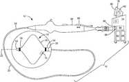Referring now toFIGS. 5-20, inflation of theballoon18 will now be discussed in greater detail. In one embodiment, theballoon18 is a highly conformable balloon that may be inflated to a variety of outer diameters, while maintaining a high degree of flexibility or conformity to the contour of an object (such as a tissue surface) with which theballoon18 is in contact. For example, when theballoon18 is inflated to have an at least substantially round first configuration, theballoon18 may be inflated to a first outer diameter OD1, such as approximately 23 mm (±2 mm) (as shown inFIG. 6). If desired, theballoon18 may be further inflated to a larger second outer diameter OD2, such as approximately 36 mm (±2 mm) (as shown inFIG. 7). Of course, theballoon18 may be inflated to any outer diameter between the first and second outer diameters, depending on the procedure, patient's anatomy, user's preference, or the like. Regardless of the outer diameter of theballoon18, however, theballoon18 remains highly compliant. The fluid, such as coolant, used to inflate theballoon18 may be delivered to theinterior chamber60 at a pressure of between 0.2 psig and 3.0 psig. Themedical system10 may further include one or more flow control valves in fluid flow pathways of themedical system10 and a vacuum pump orvacuum source84 to remove fluid from the ballooninterior chamber60. For example, the medical system10 (for example, the control unit14) may include aflow control valve86 in communication with thefluid delivery conduit42 and apressure control valve88 in communication with the fluid return conduit46 (for example, as shown inFIG. 5).