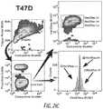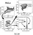 FIGS. 21A-D are plots showing three populations defined by Her2/Neu protein expressions in Jurkat, Hela, T47D, and SKBR3.