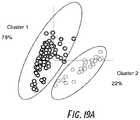 FIGS. 19A-C show PCA clustering and gene expression profiles of Jurkat cells and T47D cells separated by with a BD FACSseq™ cell sorter shown inFIGS. 18A-B.FIG. 19A is a PCA plot showing clustering of Jurkat cells and T47D cells into two clusters.FIGS. 19B-C are bar graphs showing gene expression profiles incluster 1 of Jurkat cells andcluster 2 of T47D cells.FIGS. 19B-C show that the genes highly expressed in two clusters corresponded well with Jurkat cells (cluster 1) and T47D cells (cluster 2).