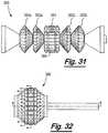 FIGS. 33A and 33B are respectively plan and isometric views of anelement385, from which theouter ring structures383a,383bare assembled.FIGS. 34A and 35B are respectively plan and isometric views of anelement386, from which theintermediate ring structures382a,382bare assembled. The Figures show the outer surfaces, first contact surfaces, and interlocking tongues. The external profiles of theelements385,386 are modified by provision ofadditional chamfers387,388. These chamfers modify the external profile of the elements, so that when assembled into a ring, the inward facing flank (i.e. the flank facing the centre ring) has an at least partially smoothed conical surface. This facilitates the deployment of the apparatus; the smoother conical surface improves the sliding action of the elements thecentre ring381 on the conical profiles of therings382a,382bas the elements are brought together to expand the centre ring. Similarly, the smoothed inward facing flank of therings383a,383bfacilitate the sliding of theelements382aof therings382a,383bduring their expansion. The smoothed cones assist a supporting ring in punching under the adjacent ring with a smooth action,