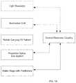 The angular size of anindividual element210 of the array FE1-A (or FE1-B, each of which has 98/2=49 individual micro-mirror elements) can be assessed with the knowledge of the angular size of the individual element of the FE2 array and the size of the light source: