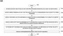 Atstep550, the processor determines entity rankings based upon dot products between the preference vector and the entity vectors of the media entity matrix. For example, a dot product between the preference vector and one of the entity vectors may measure a relative degree of similarity between the attributes of media programs presented via the at least one media device, and the media programs that are associated with the entity of the entity vector. In one example, a ranked list of entities may thus be created, where entities having entity vectors resulting in greater valued dot products may be ranked higher than entity vectors resulting in lower valued dot products.