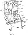 Referring now toFIG. 15, amedical device1500 comprises a medical device housing having afirst housing portion1506 facing substantially horizontally and hinged to asecond housing portion1504 facing substantially vertically, when in a user or operating configuration. In this embodiment, acamera1508 may be configured to image one or both of housing portionexternal surfaces1506,1504.Camera1508 may also be configured to image adisposable component1512 disposed on one or both external surfaces of the medical device housing.