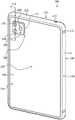 FIG. 1B shows a rear view of theelectronic device100. As shown inFIG. 1B, theenclosure110 includes a cover assembly124, which defines arear surface104 of the electronic device. In the example ofFIG. 1B, the cover assembly124 defines a substantial entirety of the rear surface of the electronic device. The cover assembly124 includes aglass cover member134. As shown inFIG. 1B, the cover assembly124 is a rear cover assembly and theglass cover member134 is a rear glass member. In some cases, theelectronic device100 includes a camera assembly coupled to an interior surface of the cover assembly124 (as shown inFIGS. 2A and 3).