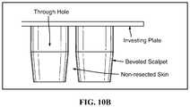 FIG. 10D is a close view of a portion of the scalpet plate, under an embodiment.