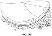 FIG. 56 shows an inner helical scalpet and an array including inner helical scalpets, under an embodiment.