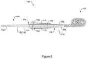 FIGS. 5 and 6 generally illustrate themedical device130 being released from theelongate shaft110, such as at a treatment site, for example. In use, themicrocatheter190 of themedical device system100 may be inserted into a patient's anatomy and a distal end guided and/or advanced to a location adjacent a treatment site. Themedical device130 disposed at thedistal end116 of theelongate shaft110 may be inserted into a proximal end of thelumen192 disposed within themicrocatheter190 and advanced through themicrocatheter190 to the treatment site. In some embodiments, themedical device130 may be disposed within thelumen192 of themicrocatheter190 proximate to thedistal end116 of theelongate shaft110. In some embodiments, themedical device130 may be disposed within thelumen192 of themicrocatheter190 proximate to thedistal end116 of theelongate shaft110 prior to use and/or prior to inserting themicrocatheter190 into the patient's anatomy. Deployment and/or release of themedical device130 may be performed selectively depending upon the type of medical device and/or the desired treatment process or method. When ready to deploy themedical device130, theelongate shaft110 may be advanced and/or translated distally relative to themicrocatheter190 until themedical device130 is exposed and/or disposed distal of themicrocatheter190.