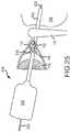 FIG. 25 is an illustration showing use of a surgical tool to dilate a fistula following initial formation of the fistula during a surgical procedure.