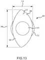 FIG. 14 shows an example of an implant device with a conduit passing through a fistula formed subconjunctivally between thelacrimal caruncle350 and theplica semilunaris352, and showing an example location for thehead354 of the implant device. Thehead354 is shown with an elongated configuration, such as for example the head configuration shown inFIGS. 4-7, one of the head configurations F-H shown inFIG. 11 or the head configuration shown inFIGS. 12 and 13.