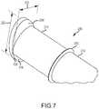 With continued reference toFIGS. 4-7, when the implant device is implanted to fluidly connect the lacrimal apparatus to a paranasal sinus through a fistula, thehead206 is disposed in the lacrimal apparatus and theproximal end202 is disposed in the paranasal sinus, and with at least a portion of theconduit208 disposed through the fistula with at least one, and preferably more than one, of theanchor protrusions212 engaging tissue within the fistula to anchor theimplant device200. When implanted in this manner, theinternal passage210 opens into the lacrimal apparatus at theproximal end202 and into the paranasal sinus at thedistal end204. Thehead206 has a flangedtissue engagement surface216 on a side of thehead206 disposed toward theconduit208, and which flangedtissue engagement surface216 is advantageously configured to engage tissue adjacent the proximal end of fistula and to prevent theproximal end202 of theimplant device200 from migrating into the fistula following implantation. On the side of thehead206 opposite the flangedtissue engagement surface216 is aface surface218 of thehead206, which facesurface218 is disposed away from tissue engaged by the flangedtissue engagement surface216 when the implant device is implanted. Thehead206 has afirst dimension220 and asecond dimension222 on both the flangedtissue engagement surface216 and theface surface218. Thefirst dimension220 is the length of the respective surface and the second dimension is the width of the respective surface. Such length and width dimensions may also be referred to as major and minor dimensions. Thefirst dimension220 of asurface216 or218 corresponds to the maximum separation distance between points on the outer edge of the surface, and thesecond dimension222 of thesurface216 or218 corresponds to the maximum separation distance between points on the outer edge of the surface that are on a line transverse to the first dimension. Conveniently, theface surface218 and the flangedtissue engagement surface216 may be made with corresponding outer edges, so that the opposingsurfaces216 and218 have substantially equal length and width dimensions, although such is not required. Thefirst dimension220 and thesecond dimension222 may be referred to generally as the length and width, respectively, of thehead206 when thesurfaces216 and218 have corresponding shapes, as is the case for the embodiment shown inFIGS. 4-7. When thesurfaces216 and218 do not have corresponding shapes, the length and width dimensions of the head will be different from one or more of the length and width dimensions of thesurfaces216 and218. Thehead206 has adepth dimension223 betweensurfaces216 and218. Thedepth dimension223 should preferably be kept to a small value so that thehead206 will have a low profile adjacent the proximal end of the fistula when theimplant device200 is implanted with the flanged tissue engagement surface engaging tissue adjacent the proximal end of the fistula.