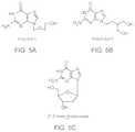 FIGS. 5A-5C show molecular structures of acyclovir (FIG. 5A), penciclovir (FIG. 5B), and 2′-deoxyguanonsine (FIG. 5C) as representative nucleoside analogues for selective riboswitch control.