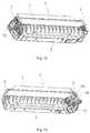 As shown inFIGS. 1 to 5, the firstforce receiving portion19 is mounted on thefirst housing1. In the first direction, a firstprotective portion18 and a supportingframe20 are provided on both sides of the firstforce receiving portion19, respectively. The firstforce receiving portion19 can receive the driving force transmitted by the electronic imaging device to drive a first force transmitting portion21 to rotate together around the first axis A1 extending in the first direction. A toner supply roller gear17 and a developingroller gear14 partially meshed with a gear of the firstforce receiving portion19 are further provided in the vicinity of the firstforce receiving portion19. The firstforce receiving portion19 can drive the toner supply roller gear17 and the developingroller gear14 to rotate. The developingroller gear14 is connected to the developingroller13, and the developingroller gear14 can drive the developingroller13 to rotate around a second axis A2 extending in the first direction. The toner supply roller gear17 is connected to atoner supply roller16, and the toner supply roller gear17 can drive thetoner supply roller16 to rotate. The first force transmitting portion21 is meshed with astirring rack gear22. Adoctor blade15 is mounted in the vicinity of the developingroller13. The firstelectrical conduction portion25 is mounted at an end of thefirst housing1 away from the firstforce receiving portion19 in the first direction. The firstelectrical conduction portion25 is made of a conductive material, such as a conductive resin material, a metal material or the like, and is used for receiving power transmitted from the conductive portion (not shown) of the electronic imaging device and supplying it to at least one of the developingroller13, thetoner supply roller16 and thedoctor blade15. A sealing portion24 and a firstelastic portion23 are further provided on thefirst housing1. The sealing portion24 on thefirst housing1 can be opened to add the developer into thefirst housing1. The firstelastic portion23 allows the developingroller13 and thephotosensitive drum6 on the process cartridge to maintain a close contact state when the process cartridge is working. In addition, when thefirst housing1 is connected to thesecond housing2, the firstforce receiving portion19 will protrude from a fourthhollow portion5aon the drivingside cover5, and a first forcedportion18bthat can be in contact with the separatingforce receiving component3 is provided on the firstprotective portion18.