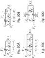 FIGS. 37A and 37B are schematic diagrams that show networks of fixed capacitors and a variable inductor designed to produce an overall variable capacitance.