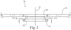 With continued reference toFIGS. 1-5A and particular reference toFIGS. 3 and 4, disposed perpendicular to thelongitudinal axis14 of thetube body12 at thefirst end60 of thetube body12 is thefirst flange16. Thefirst flange16 includes an axis ofsymmetry26. Disposed perpendicular to thelongitudinal axis14 of thetube body12 at thesecond end62 of thetube body12 is thesecond flange18 which has an axis ofsymmetry28. Thefirst flange16 and thesecond flange18 are configured such that the axes ofsymmetry26 and28 of the first andsecond flanges16 and18 are perpendicular to each other, as well as to the axis ofsymmetry14 of thetube body12.