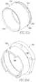 In one embodiment, shown inFIG. 37B, the outer die quick-release coupling1506 includes a generallytoroid body1580 with a number ofbayonet pin channels1582, a bayonetpin channel cutout1584, and an inwardly, radially extendinglocking lip1586. The outer die quick-release coupling bodybayonet pin channels1582 are generally similar and only one is described. Each outer die quick-release coupling bodybayonet pin channel1582 is an elongated obround channel that is disposed at an angle relative to the axis of rotation of the process shaft assembly shaft1022 (when installed). Further, the outer die quick-release coupling bodybayonet pin channels1582 are defined by a compliant material and include offset ends. As used herein, an “offset end” is an end that is shifted to one lateral side relative to a longitudinal axis of the channel.