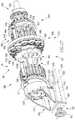 As shown inFIG. 28, theoutboard turret assembly1200 includes a positioningkey assembly1280. The outboard turret assembly positioning,key assembly1280 is substantially similar to the traveling hub assembly positioningkey assembly580 discussed above. As the outboard turret assembly positioningkey assembly1280 is substantially similar to the traveling hub assembly positioningkey assembly580, details of the outboard turret assembly positioningkey assembly1280 are not discussed herein but it is understood that similar elements exist and are identified by the collective adjective “outboard turret assembly positioning key assembly [X]” and the reference numbers for those elements are +700 relative to the elements of the traveling hub assembly positioningkey assembly580. For example, the traveling hub assembly positioningkey assembly580 includes afirst wedge body670; thus, the outboard turret assembly positioningkey assembly1280 includes a first wedge,body1370.
