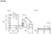 FIGS. 52A-52F are diagrams of an exemplary modular autonomous logistics transport vehicle apparatus (MALVT bot apparatus) interfacing and interacting with an exemplary node-enabled pick and place machine in a warehousing location in accordance with an embodiment of the invention;