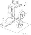 FIG. 37 is a diagram of an exemplary modular autonomous logistics transport vehicle apparatus (MALVT bot apparatus) in a configuration having a cargo door extended and in a forward tilted orientation in accordance with an embodiment of the invention;
