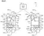 FIG. 47A-47B are diagrams of an exemplary system involving an exemplary modular autonomous logistics transport vehicle apparatus (MALVT bot apparatus) the performs an inventory management related dispatched logistics operation related to an inventory item at an inventory hub location and one of multiple remote business locations in accordance with an embodiment of the invention;