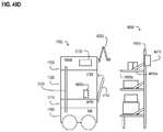 FIGS. 48A-48D are diagrams of an exemplary modular autonomous logistics transport vehicle apparatus (MALVT bot apparatus) interfacing and interacting with an exemplary node-enabled shelving system to pickup/drop-off an inventory item in accordance with an embodiment of the invention;