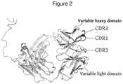 FIG. 2. A cartoon of the structure of an Fv region of a natural mammalian antibody showing the 3 labeled (Complementarity Determining Regions) CDRs of the VHand the 3 unlabeled loops of the VLCDRs, which form the paratope or antigen binding site.