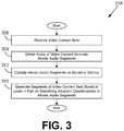 Beginning withbox306, thesegment generation service218 receives a video content item224 (FIG. 2). For example, thevideo content item224 may be previously stored in the data store212 (FIG. 2) or elsewhere on a content delivery network. Thesegment generation service218 may need to receive the entirety of thevideo content item224 in order to compute statistics and thresholds that pertain to thevideo content item224. Alternatively, thesegment generation service218 may be capable of processing a portion of thevideo content item224 at a time.