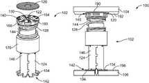 FIG. 3 is an exploded view of theelectrical connector102 in accordance with an exemplary embodiment. Theelectrical connector102 includes aninner conductor122 and anouter conductor124. Theelectrical connector102 may include aninsulator126 configured to be positioned between theinner conductor122 and theouter conductor124 in various embodiments. Theinner conductor122 is in electrical communication with and proximate to theouter conductor124. For example, theouter conductor124 may include an inner region that receives theinner conductor122. In an exemplary embodiment, theinner conductor122 is received in theouter conductor124 and is coaxial with theouter conductor124. Theinner conductor122 is a signal conductor and theouter conductor124 provides electrical shielding for theinner conductor122. The shieldinggasket120 is configured to be coupled to an end of theouter conductor124. In an exemplary embodiment, theelectrical connector102 is a spring-loaded coaxial connector. Theelectrical connector102 includes a biasingspring128 coupled to theouter conductor124 to spring load theouter conductor124.