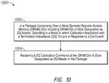 FIG. 10 is a flow diagram of a method according to an embodiment of the disclosure. As shown inflow chart1000, at1002, in a package comprising one or more dynamic random access memory (DRAM) dice including DRAM die or dice designated as ZQ Master, operating in a mode in which calibration associated with a termination impedance (ZQ) occurs in response to a command may be performed. At1004, issuing a ZQ calibration command to the DRAM die or dice designated as ZQ Master in the package may be performed.