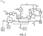 FIG. 2 illustrates a power production system substantially similar to the system shown inFIG. 1 but being configured for intermixture of the circulating fluid with the turbine exhaust stream to effect heating thereof. As illustrated inFIG. 2, a circulating fluid is provided to the low-grade heat source170 throughline169, and make-up fluid can be provided as needed during operation of thepower production system10. The circulating fluid is heated in the low-grade heat source170 to the desired temperature and passes throughline171 to transfer the heat to the turbine exhaust stream inline123.FIG. 2 again illustrates alternative pathways for the circulating fluid inline171. The circulating fluid may pass throughline172 in order to provide heating to the turbine exhaust inline123 prior to passage into theprimary heat exchanger130. The circulating fluid may pass throughline173 in order to provide heating to the turbine exhaust inline123 during passage through theprimary heat exchanger130. In either case, the circulating fluid may be combined with the turbine exhaust to form a mixed stream. As such, the stream exiting the primary heat exchanger inline133 comprises the turbine exhaust combined with the circulating fluid. The combined stream can be processed in thewater separator135 to remove water from the turbine exhaust, the water exiting inline137. In embodiments wherein water is used as the circulating fluid, a fraction of the water fromline137 can be diverted inline178 toline177 for passage back to the low-grade heat source170. If desired, a splitter, valve, or similar element (not illustrated inFIG. 2) can be provided inline137 to facilitate removal of the proper ratio of the water inline137. In embodiments wherein the circulating fluid comprises carbon dioxide, the carbon dioxide can be removed fromline139 exiting the top of thewater separator135. Specifically, a fraction of the carbon dioxide fromline139 can be diverted inline179 toline177 for passage back to the low-grade heat source170. Again, a splitter, valve, or similar element (not illustrated inFIG. 2) can be provided inline139 to facilitate removal of the proper ratio of the carbon dioxide inline139. In one or more embodiments, one or more additional separation units may be included in order to facilitate separation of the circulating fluid for recycling back to the low-grade heat source. For example, a firstfluid separation unit136amay be positioned inline133 for removal of the circulating fluid from the turbine exhaust stream between the primary heat exchanger and thewater separator135. As another example, a secondfluid separation unit136bmay be positioned inline139 for removal of the circulating fluid from the recycle CO2stream between thewater separator135 and thecompressor140. As still another example, a thirdfluid separation unit136cmay be positioned inline137 for removal of the circulating fluid from the water stream exiting thewater separator135. In each case, a further line may be provided for passage of the removed circulating fluid back toline177 for passage into the low-grade heat source170.