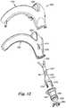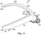 In one embodiment, the manifold220 is formed (i.e., molded) from a thermoplastic polymer material such as, for example, polypropylene, polyethylene, polythene, nylon/epdm mixture and expanded polyurethane foam. Such materials might incorporate fillers or additives such as pigments, hollow glass, microspheres, fibers, etc.FIG. 11 illustrates the manifold220 in assembled form.FIG. 12 illustrates the manifold220 in an exploded view, wherein in this embodiment, the manifold220 has anupper half250 andlower half252. The upper andlower halves250 and252 are formed to fit or mate together to define the manifold220, with the space between the upper andlower halves250 and252 formingair delivery conduits228 and229 (that are in fluid communication with theair inlet conduit226 coupled thereto). Upon assembly, the upper andlower halves250 and252 are secured together by a plurality of suitable fasteners (such as threaded fasteners) or may be mounted together using thermal or ultrasonic bonding techniques, or other suitable fastening arrangement. Once assembled, it is not contemplated that any portion of the manifold be separated from the manifold, other than thelock ring246.