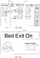 Astatus section2438 includes anindicator2458 which provides a display of the current head angle of thehospital bed10. Alocation2460 of thestatus section2438 provides an indication that that thehospital bed10 is monitoring for an alert condition, such as an alert condition assisted with a patient position monitoring system. For example, theicon2462 shown inFIG. 68 provides an indication that the patient position monitoring system is set to alert if the patient exits thehospital bed10. Athird portion2464 of thestatus section2438 provides the indication of the status of a subsystem, such as an operating condition of themattress1900. Anicon2466 provides an iconic representation of the status of themattress1900 being in a maximum inflate mode. Theicon2466 may have components that flash, blank, illuminated in sequence, or otherwise provide an animated indication that a status is active. In addition, atext box2468 is displayed to indicate the condition in a text form. In the case of the maximum inflate mode, asecond text box2470 displays a timer indicating the amount of time that the system will permit themattress1900 to be maintained in the current state. In some embodiments, thetext box2468 is omitted and only an icon, such as theicon2466 is displayed. Thetext box2470 may not be present if there is no limit on the time for themattress1900 to be in the current condition. While thestatus section2438 in the illustrative embodiment ofFIG. 68 displays information regarding alerts at thelocation2460 and a status of themattress1900 at thelocation2464, in other embodiments the status of other subsystems may be displayed within the status section of thehome screen2404.