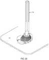 As shown inFIG. 35A, thefastener402 can be disengaged from thecomponent404 such that thethread portion408 is not coupled with thethread portion416. Thus, thefastener402 including thethread portion416 and thehead portion414 can reside in thepocket portion410 with somespace420 thereabout. More particularly, thepocket portion410 can be sized to receive thefastener402 therein allowing for thespace420 between a sidewall of thepocket portion410 and parts of the surface of thefastener402 that form thehead portion414 and thethread portion416. Thisspace420 can allow sterilizing solution access to thethread portion408, thepocket410 and thefastener402 through theopening418 and around thehead portion414, for example.